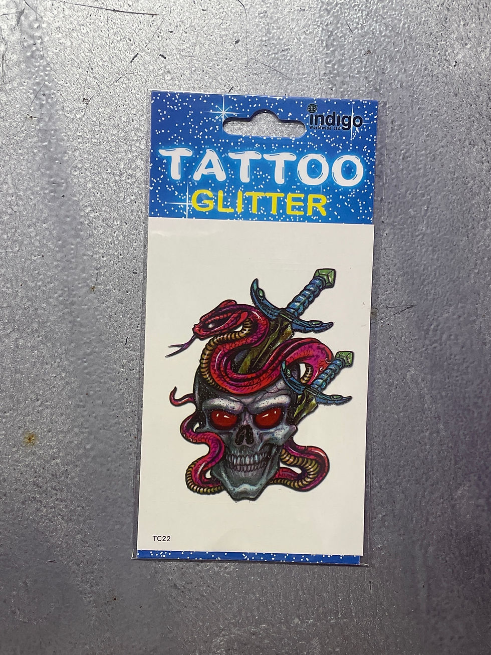 Temporary glitter skull tattoo